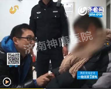 民警劝说小伙子,“给你找点东西吃”,但小伙子不愿离开。其实,小伙子从下午开始就一直蹲在山东电视台门口,害怕小伙子被冻坏了,有人拨打110报警。